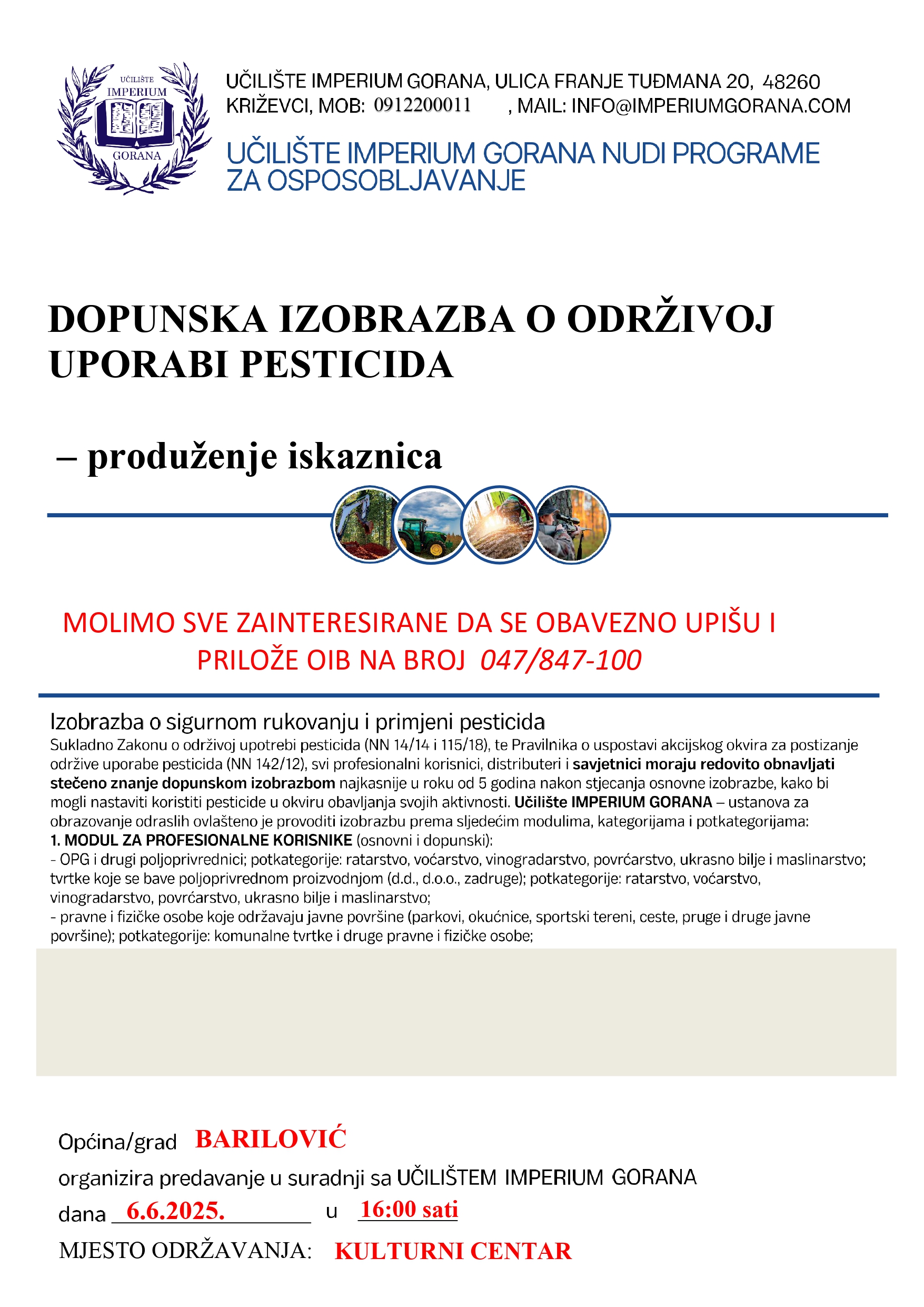 Dopunska izobrazba o održivoj uporabi pesticida