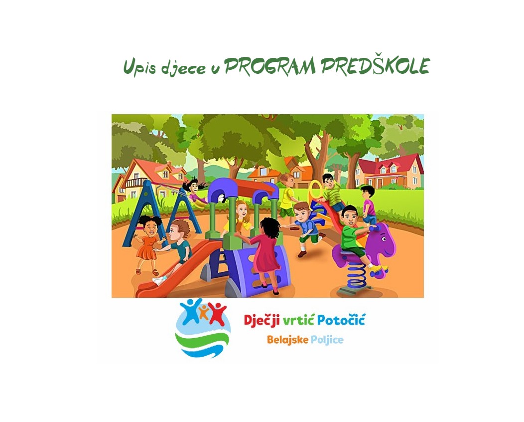 Javni poziv za upis djece u PROGRAM PREDŠKOLE u Dječji vrtić „Potočić“ Belajske Poljice za pedagošku godinu 2021./2022.
