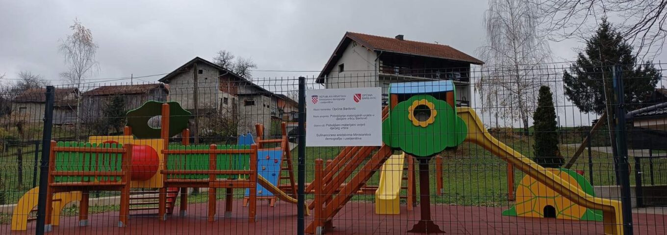 Putem Javnog poziva „Dostupnost kvalitetne skrbi za djecu u lokalnim zajednicama kroz poboljšanje materijalnih uvjeta u dječjim vrtićima“ prijavljen je i uspješno proveden projekt „Poboljšanje materijalnih uvjeta u Dječjem vrtiću Barilović“, koji obuhvaća uređenje i opremanje dječjeg igrališta uz novoizgrađeni objekt vrtića.